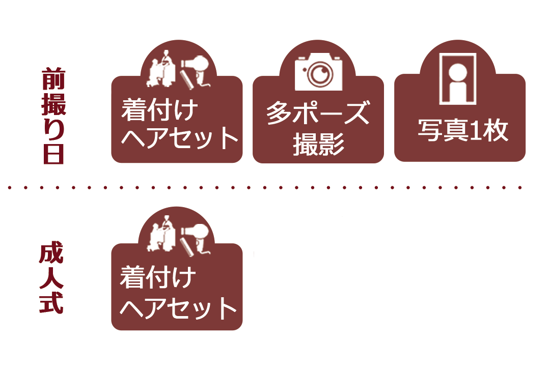 | 前撮り時 | 撮影振袖レンタル38,500円 |