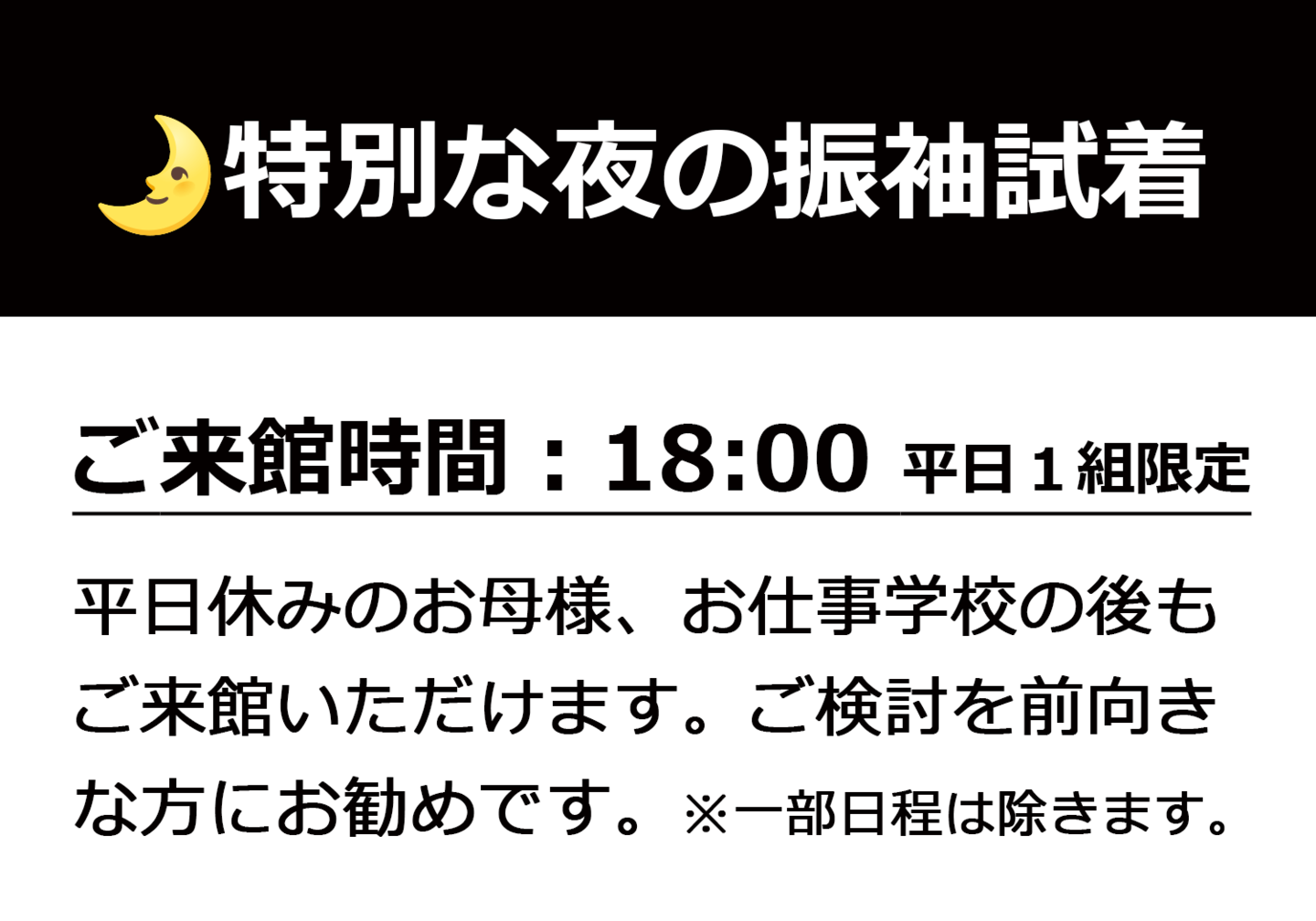業界初!昼夜選べる振袖試着なら冨士写真館